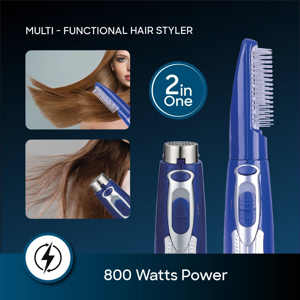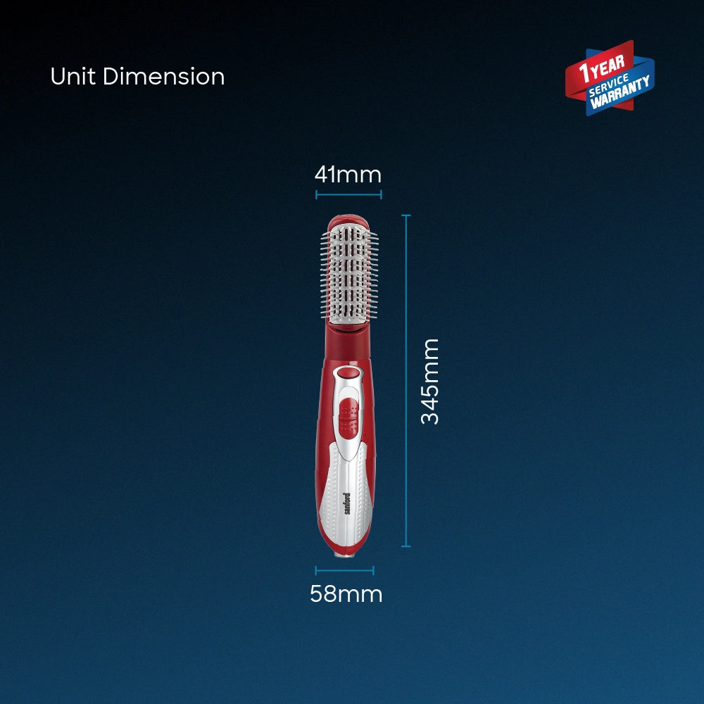 Powered by an efficient 800W motor, the styler features three adjustable heat settings to suit all hair types, from fine to thick. The detachable brush head allows smooth transitions between styling functions, while the 360° swivel cord ensures tangle-free operation. Built-in overheat protection safeguards your hair and the appliance, making it both effective and safe.