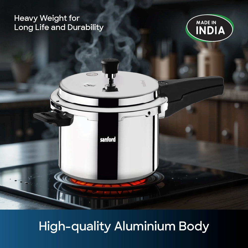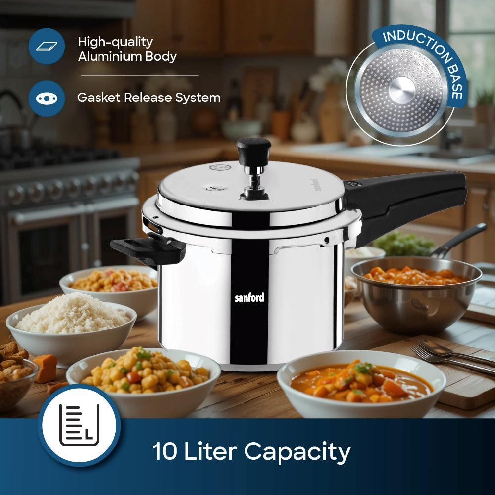 The Sanford 10L Aluminium Pressure Cooker with Induction Base is the ideal kitchen companion, blending safety, efficiency, and versatility to meet the demands of modern cooking. Designed with both the experienced cook and the home chef in mind, this pressure cooker stands out for its combination of durability, quick cooking capabilities, and user-friendly features.