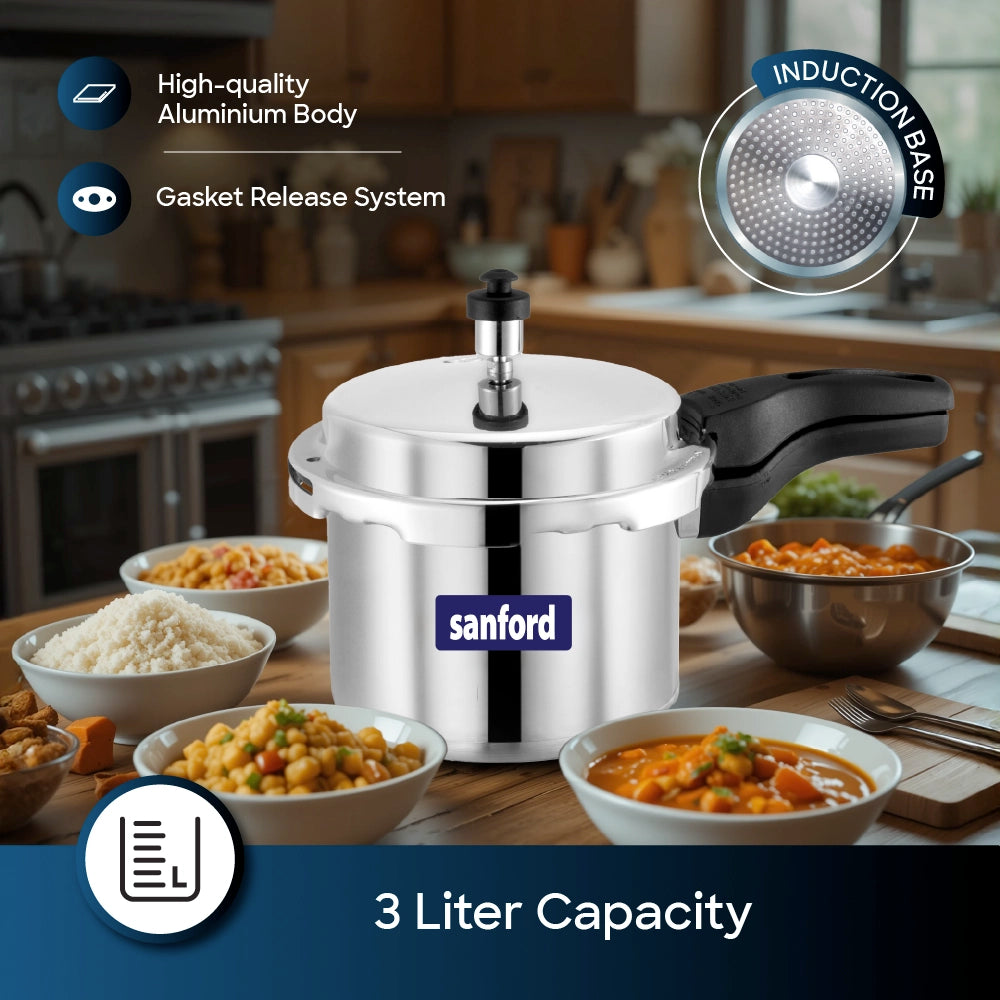The Sanford 3.0L Aluminium Pressure Cooker with Induction Base is the ideal kitchen companion, blending safety, efficiency, and versatility to meet the demands of modern cooking. Designed with both the experienced cook and the home chef in mind, this pressure cooker stands out for its combination of durability, quick cooking capabilities, and user-friendly features.