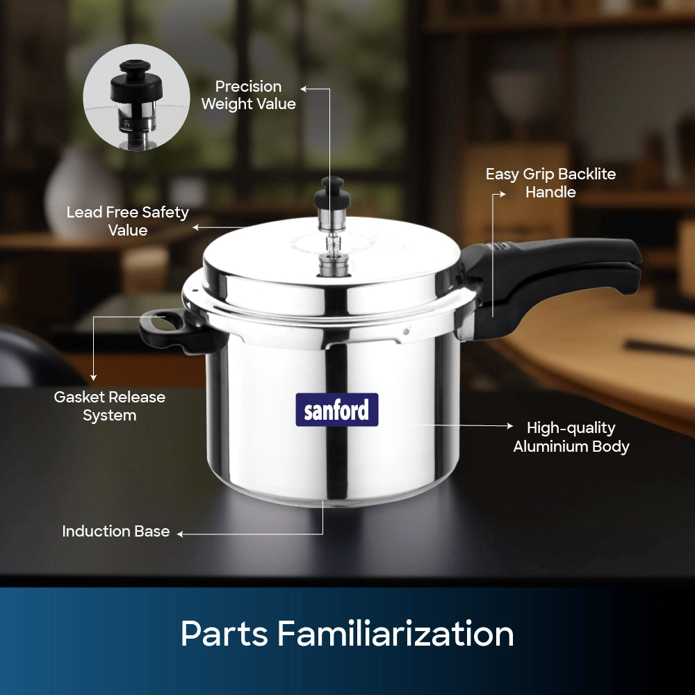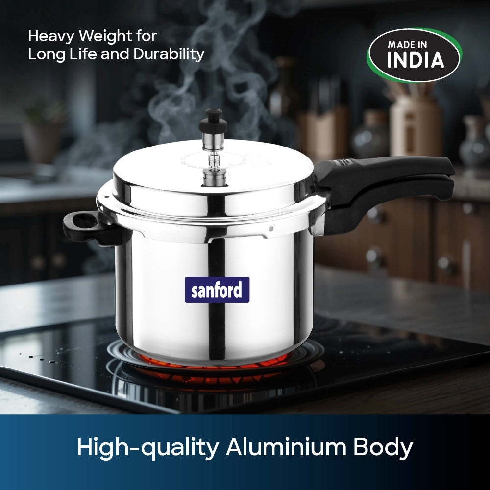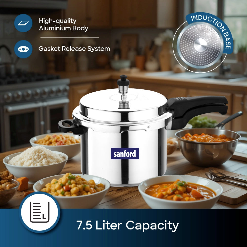 The Sanford 7.5L Aluminium Pressure Cooker with Induction Base is the ideal kitchen companion, blending safety, efficiency, and versatility to meet the demands of modern cooking. Designed with both the experienced cook and the home chef in mind, this pressure cooker stands out for its combination of durability, quick cooking capabilities, and user-friendly features.