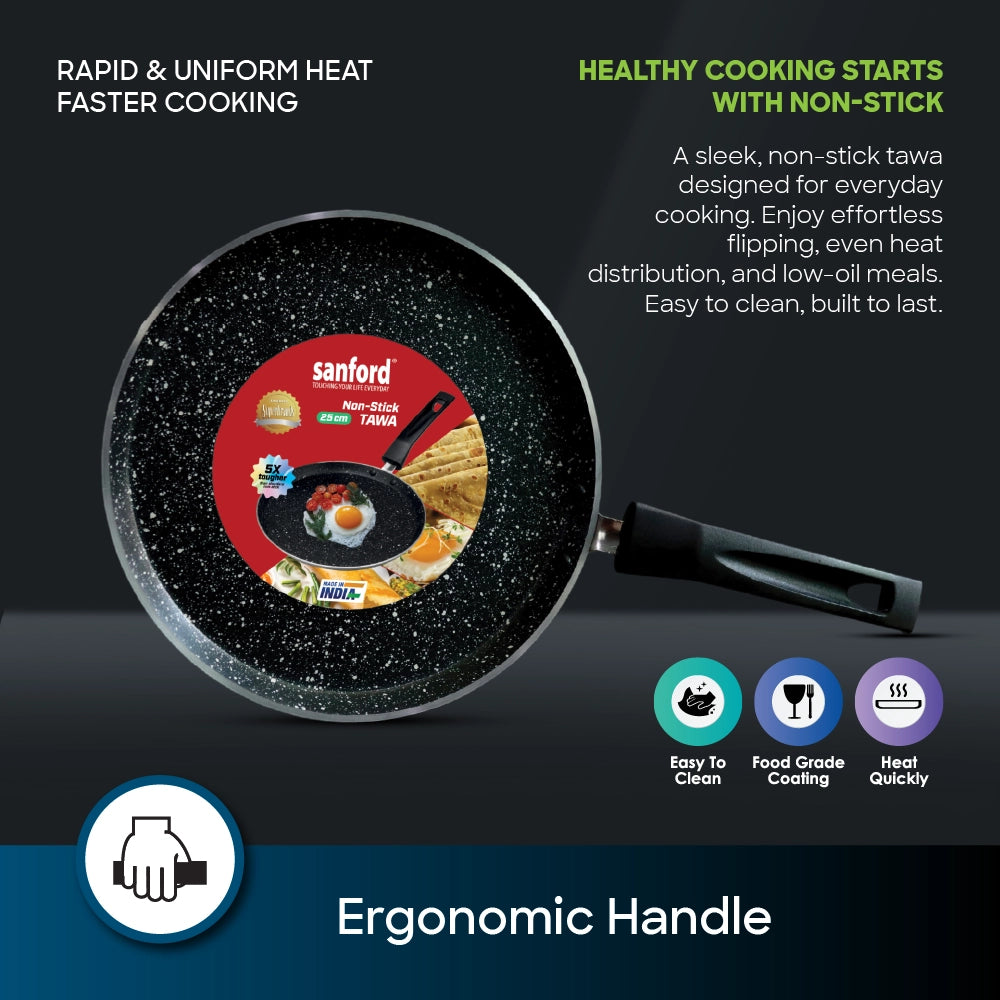 Cook healthier, faster, and smarter with the Sanford 25cm Non-Stick Tawa, a must-have cookware for Indian kitchens. Ideal for everyday tasks like making dosas, rotis, parathas, or omelettes, this tawa offers convenience and consistent results with every use. Designed to suit both gas stoves and induction cooktops, it supports your modern lifestyle while keeping cooking effortless.