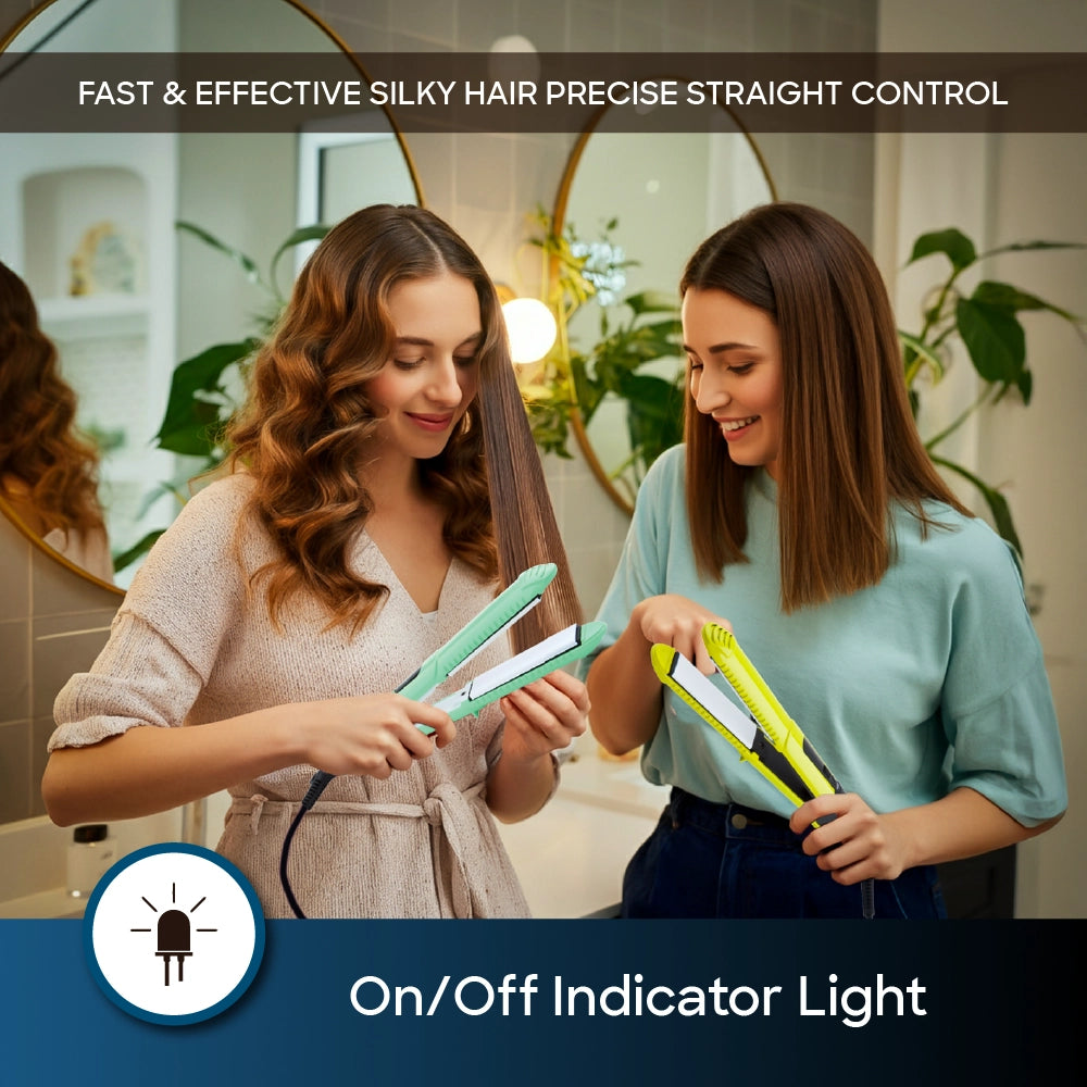 Perfect for daily grooming or travel, this straightener includes a safety lock for secure storage and a power indicator light for added safety. With universal voltage compatibility, you can rely on it anywhere you go, making it your ideal partner for effortless, polished hairstyles.