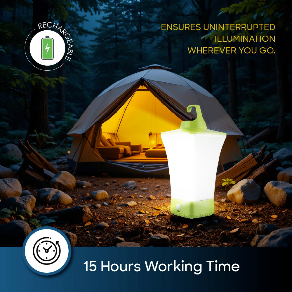 Powered by a 3.7V 1800mAh lithium-ion battery, the lantern offers multiple brightness levels and up to 15 hours of operation on low mode. Its compact and lightweight design, combined with a convenient USB charging feature, makes it an ideal companion for Indian homes, students, travelers, and emergency preparedness. With its modern form and durable build, it fits seamlessly into any lifestyle or environment.