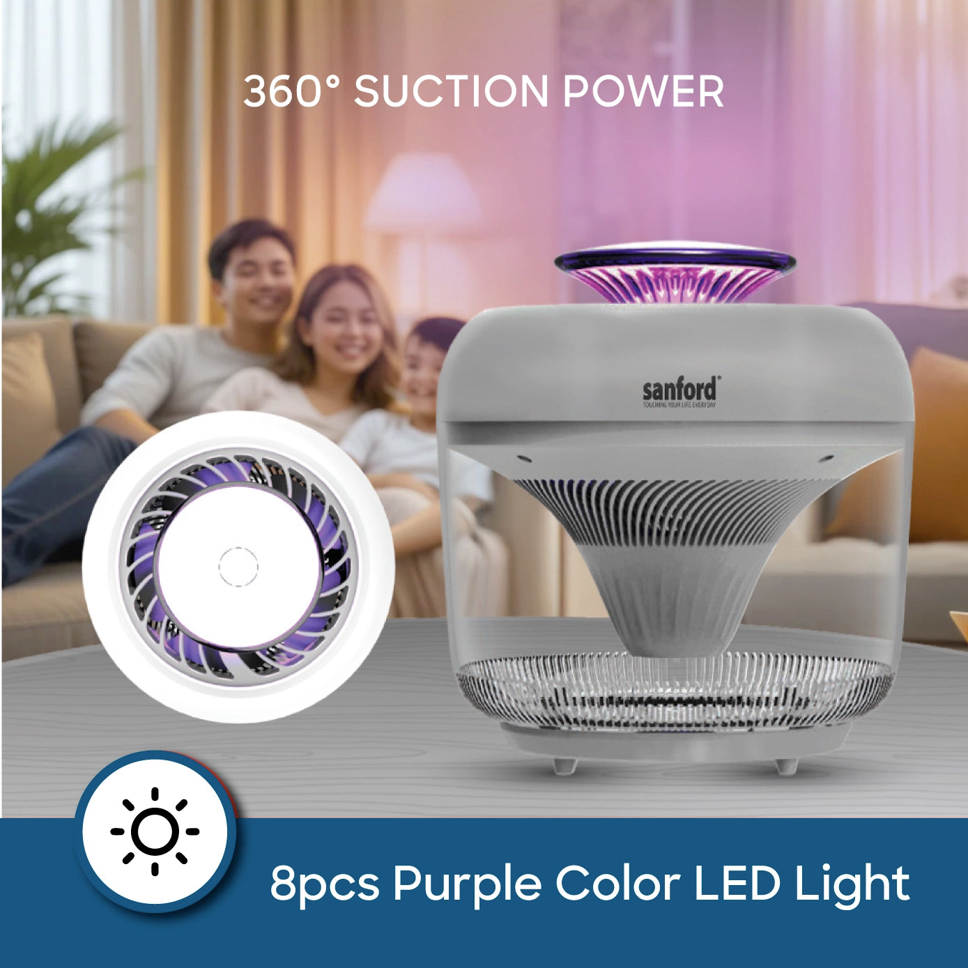 Enjoy peaceful nights and a bug-free environment with the Sanford Mosquito Killer, your silent guardian against irritating mosquitoes. Designed with modern safety and convenience in mind, this device uses UV LED light to attract mosquitoes, then traps them efficiently with its 360-degree suction fan. Free from chemicals and harmful radiation, it ensures a safe sleeping atmosphere for families, babies, and pets.