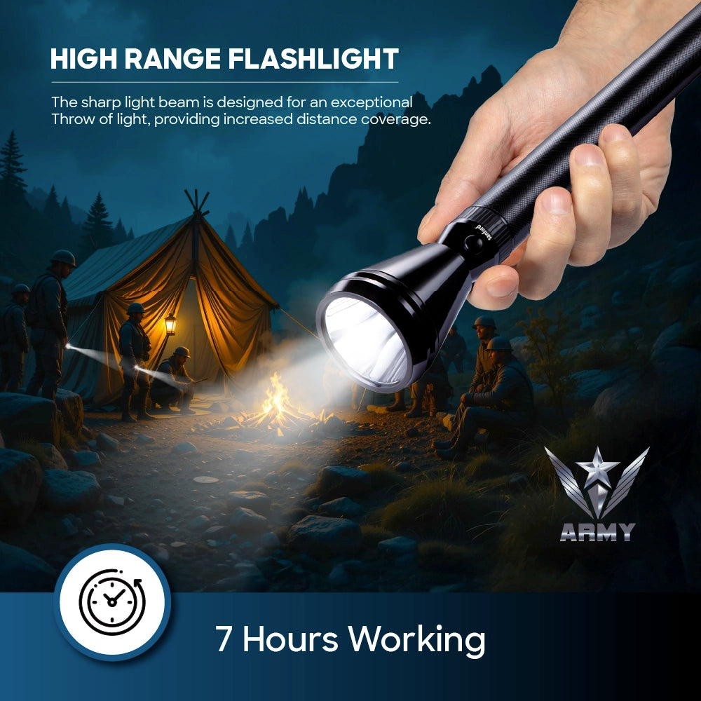 Ideal for field operations, rural power cuts, night patrols, and emergency kits, this LED Torch Flashlight is the perfect blend of strength, efficiency, and reliability tailored for Indian users.
